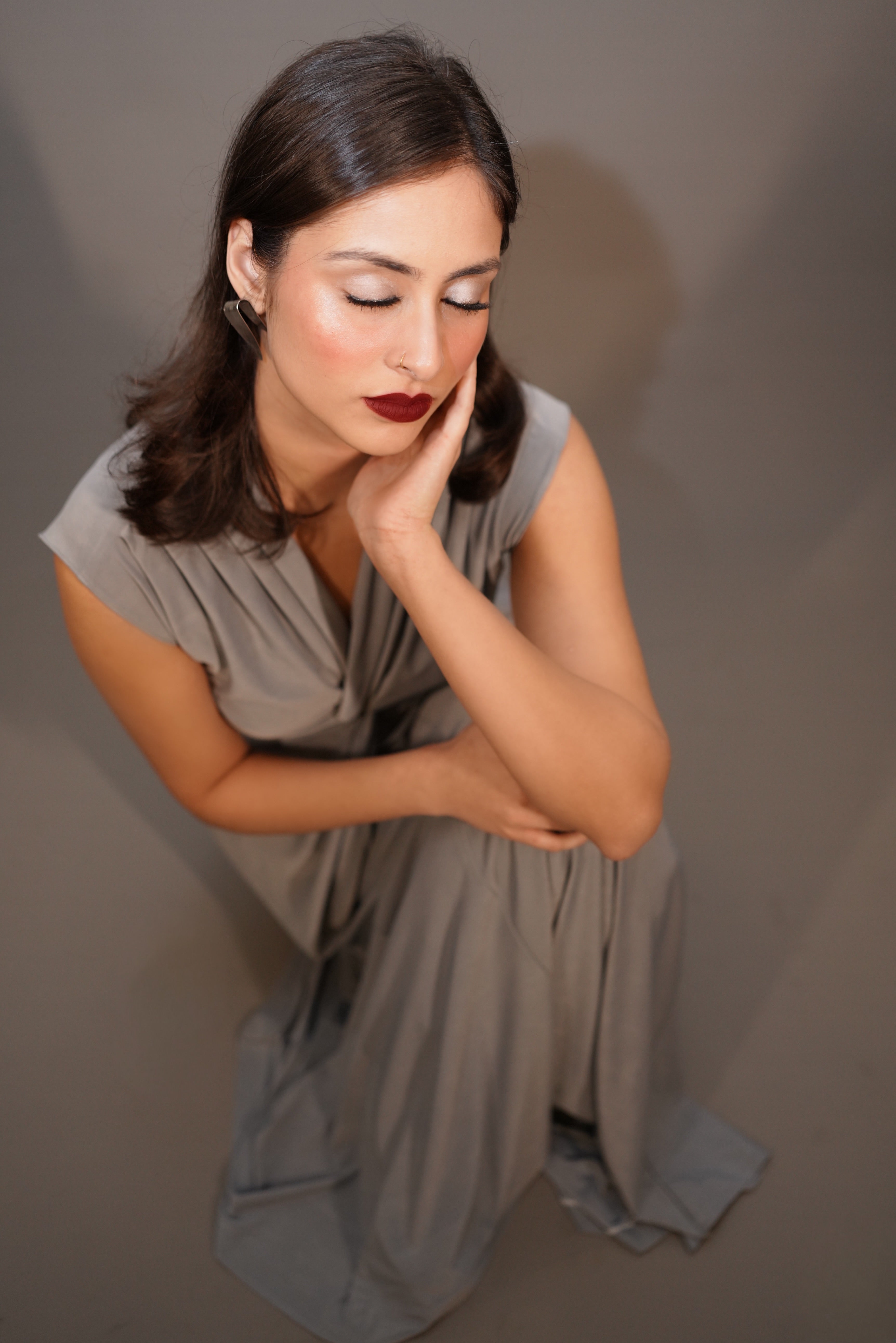 Front twist jersey top with pleated skirt